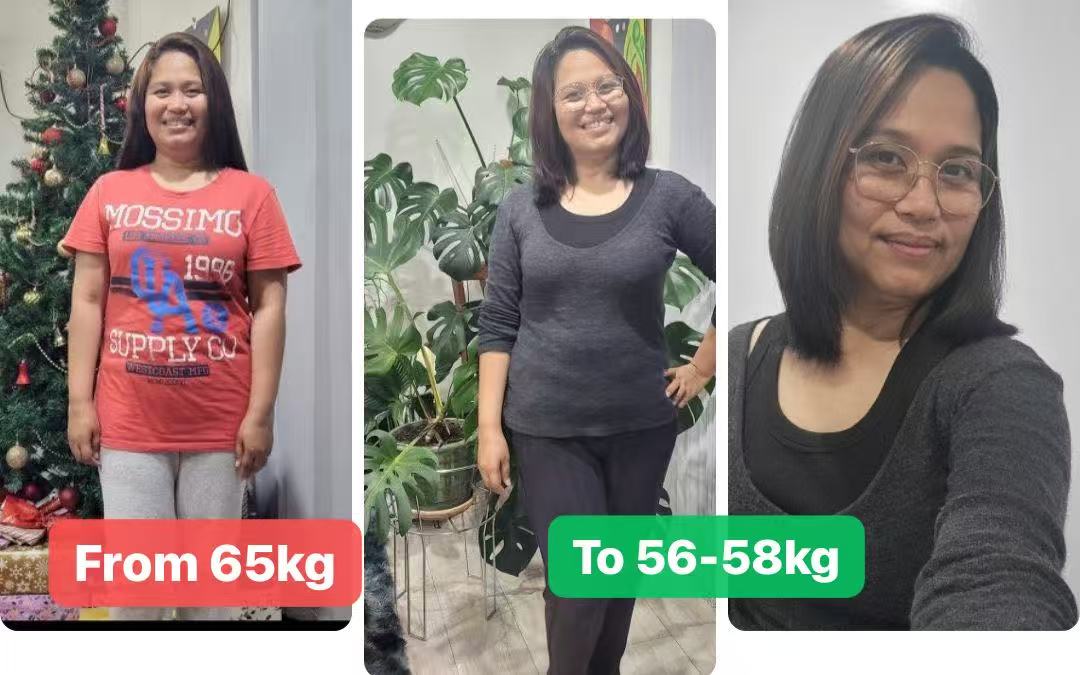 • アイリーンさんの変身物語は、感謝、決意、そして静かな感動に満ちたものです。健康への旅を始めた時、彼女は体重65kgで、持続的な変化を起こす準備ができていました。指導、励まし、そして彼女自身の努力を通して、彼女はバランスの取れた栄養価の高いライフスタイルを実践するようになりました。それは、体に良い食事、意識的な選択、そして完璧さを求めるのではなく継続することに重点を置いたものでした。