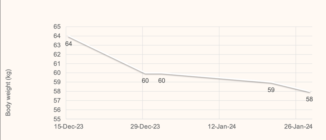 • 私たちのスタークライアントは8週間で6kg減量しました!