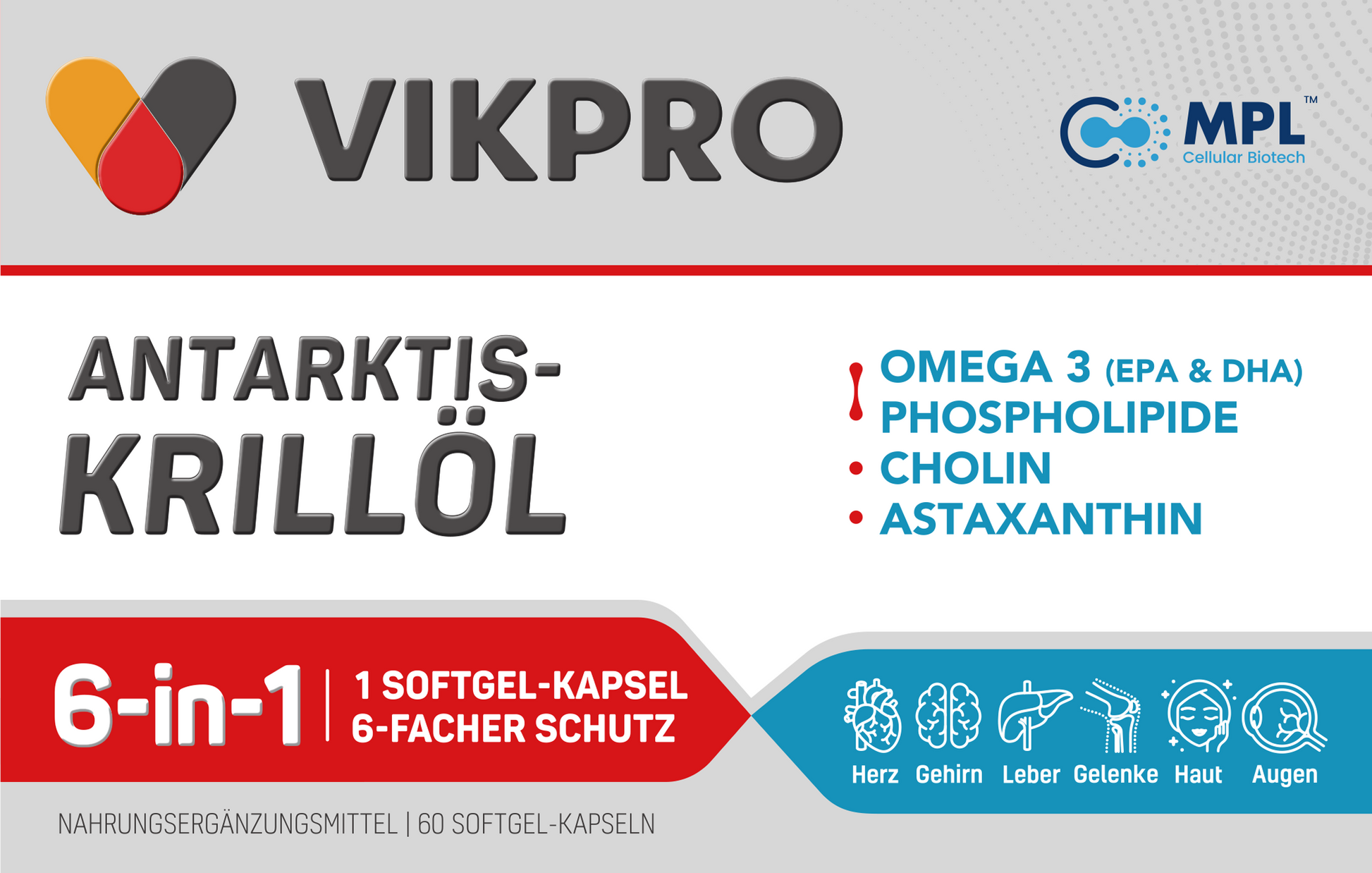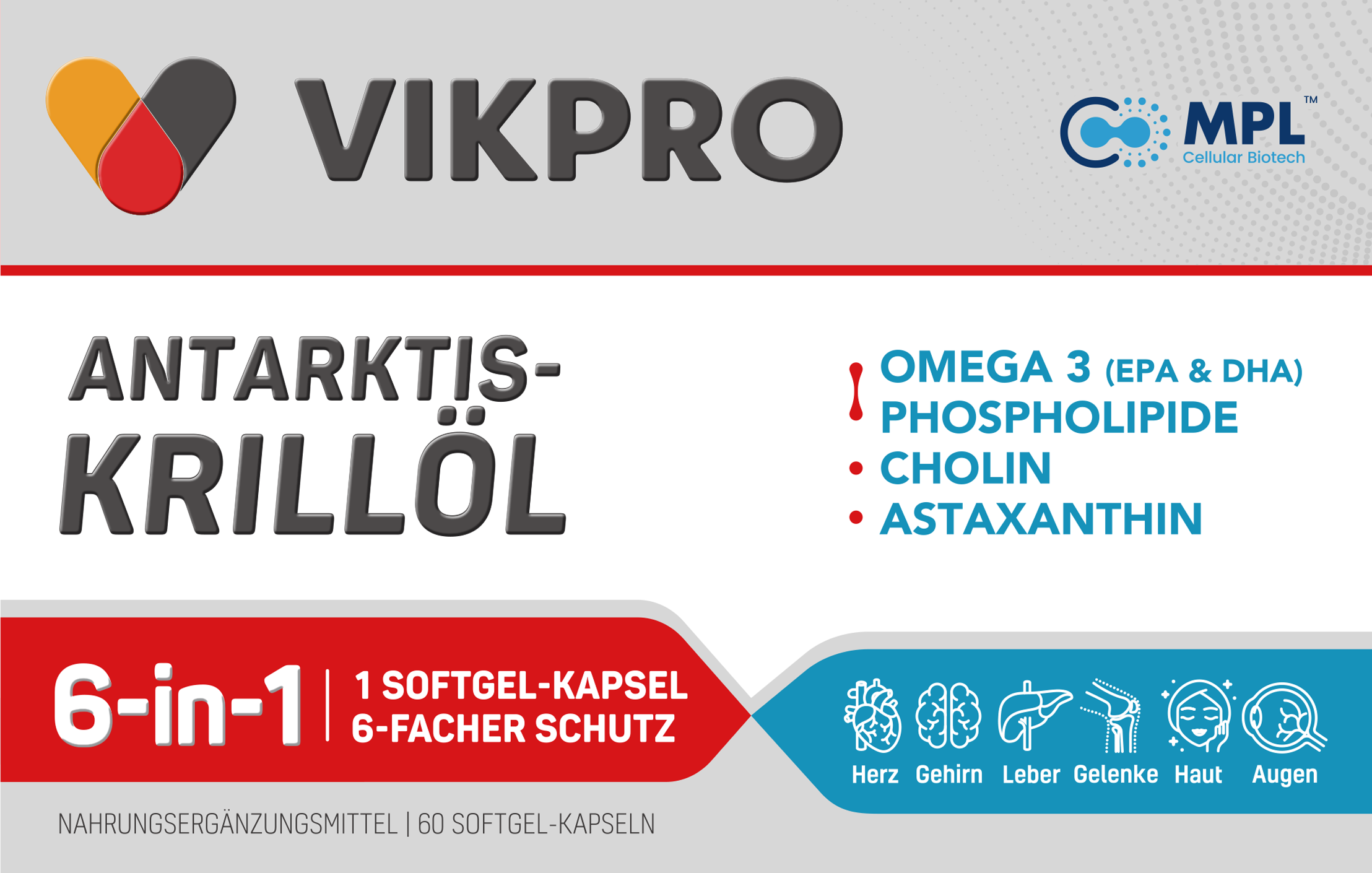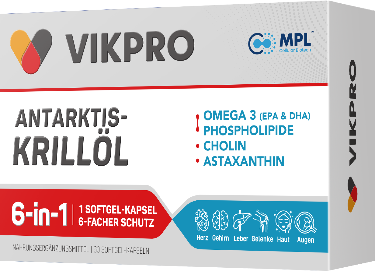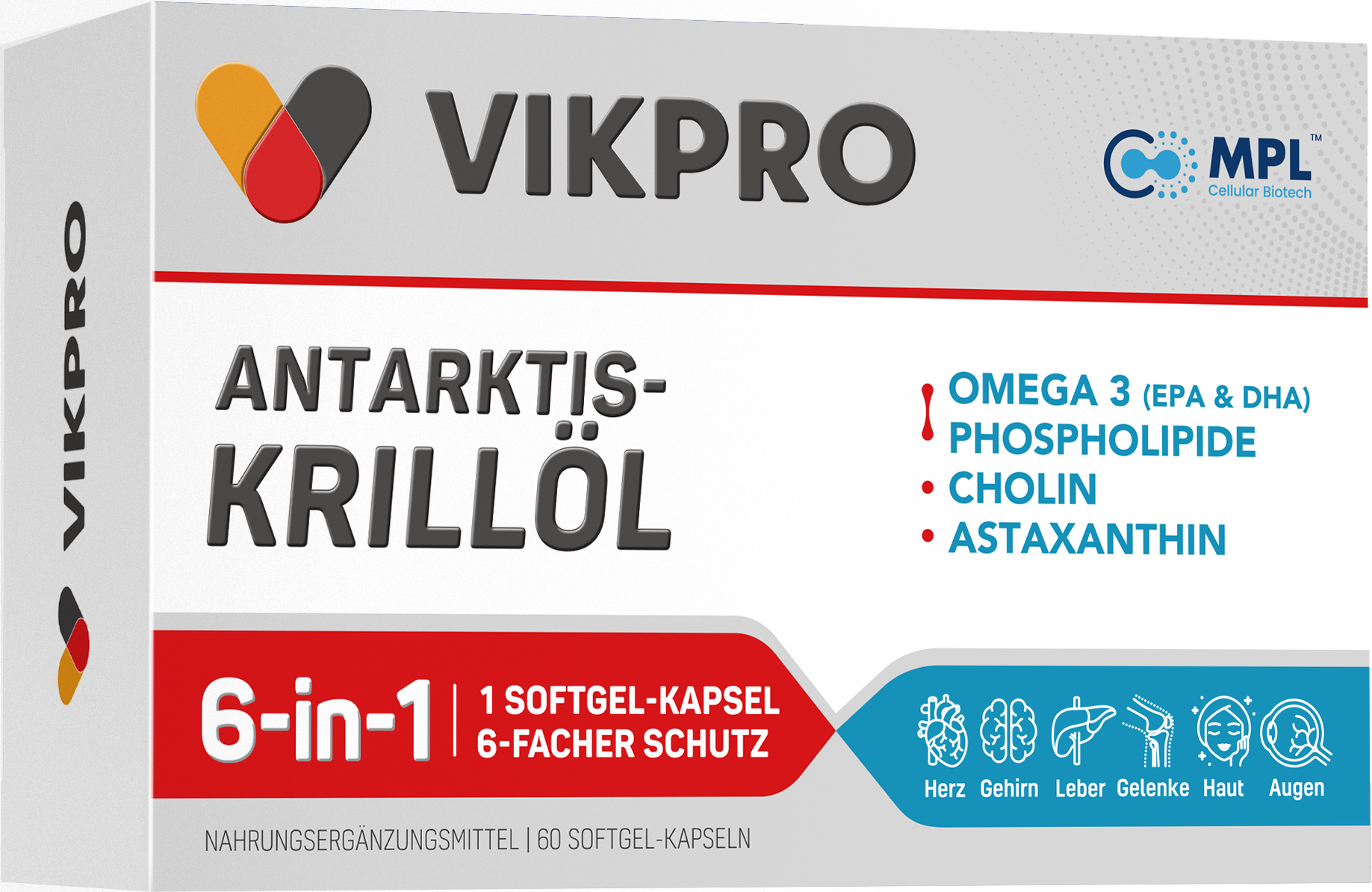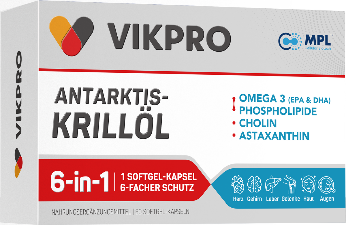 VIKPRO ANTARCTIC KRILL OIL is a premium natural supplement sourced from deep Antarctic waters, made with Superba Boost™ krill oil – a clinically researched and highly bioavailable form of marine omega-3. It contains a unique combination of EPA, DHA, phospholipids, choline, and astaxanthin, delivering superior absorption and effectiveness compared to traditional fish oil.